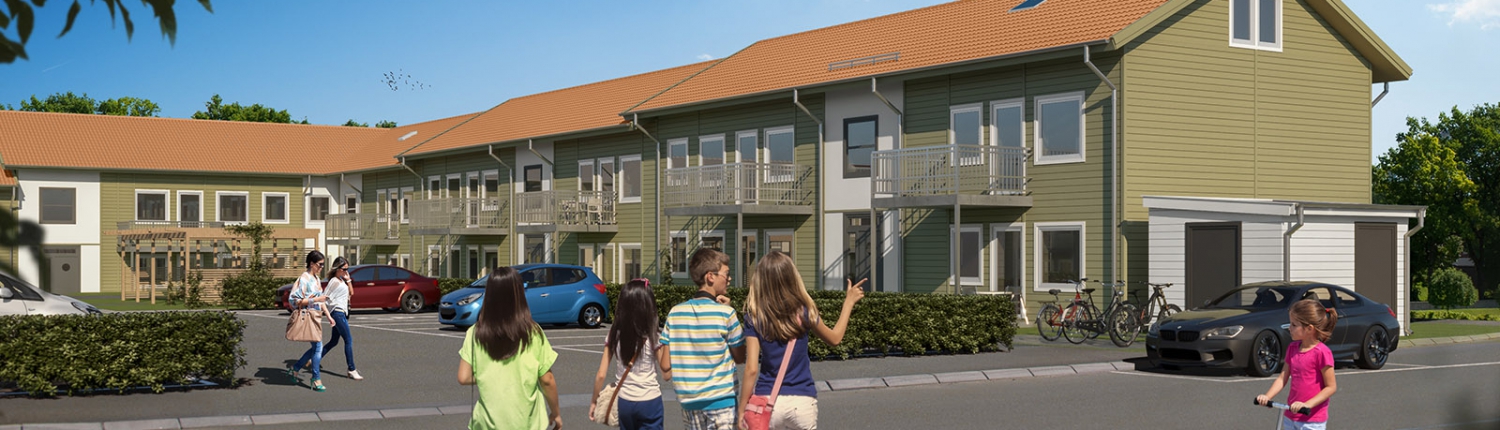 Tillsammans med bl.a. Götenehus uppförde vi 45 nya hyreslägenheter i Trädgårdsstaden i Skövde.